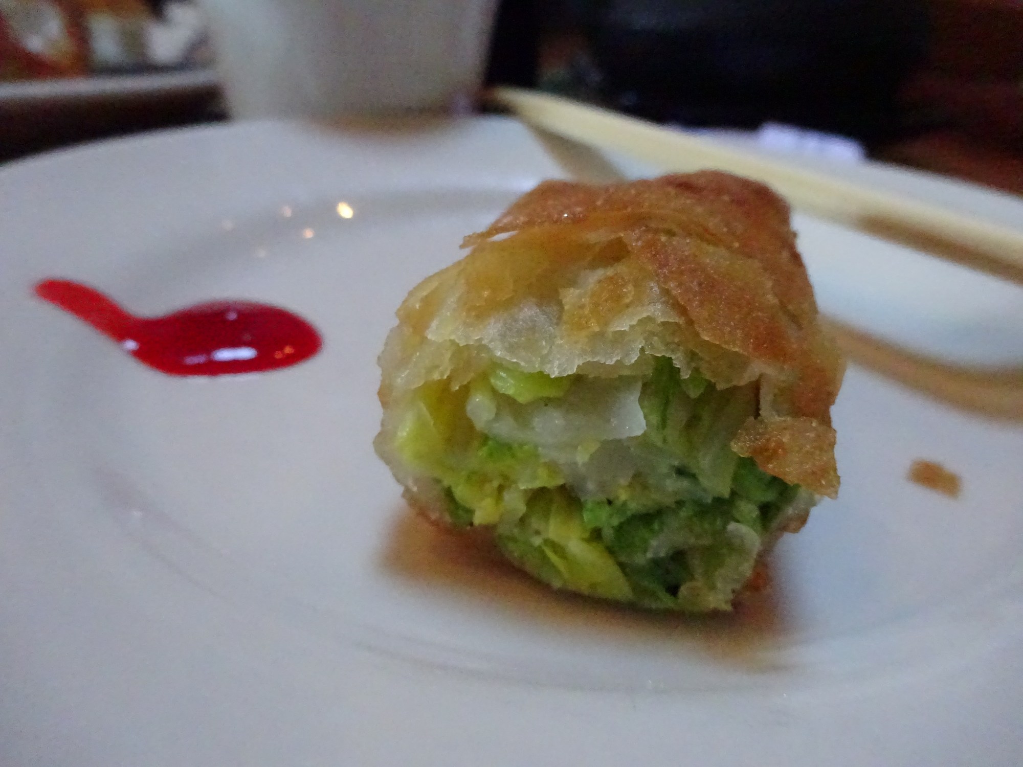 I did, however, enjoy the spring rolls. Even though they were chock full of vegetables, my daughter ate them. These were less oil-laden then ones served over at Yank Sing.