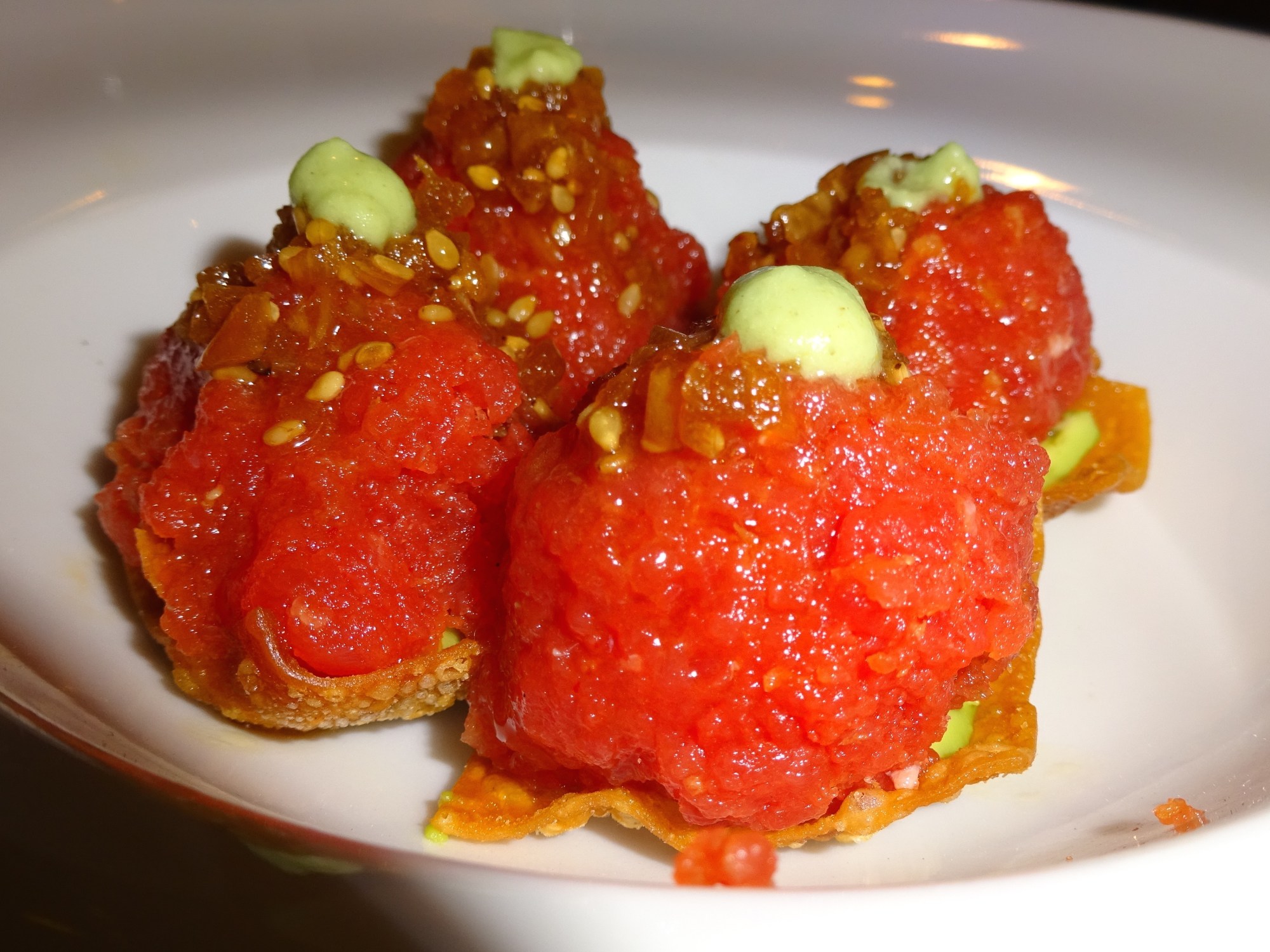 If one is not too hungry, order a few of the appetizers instead of an entree. The appetizers here really shine, like the ahi tuna tartare on won ton crisps (pictured at the top). The Japanese tai snapper carpaccio is also another winner.