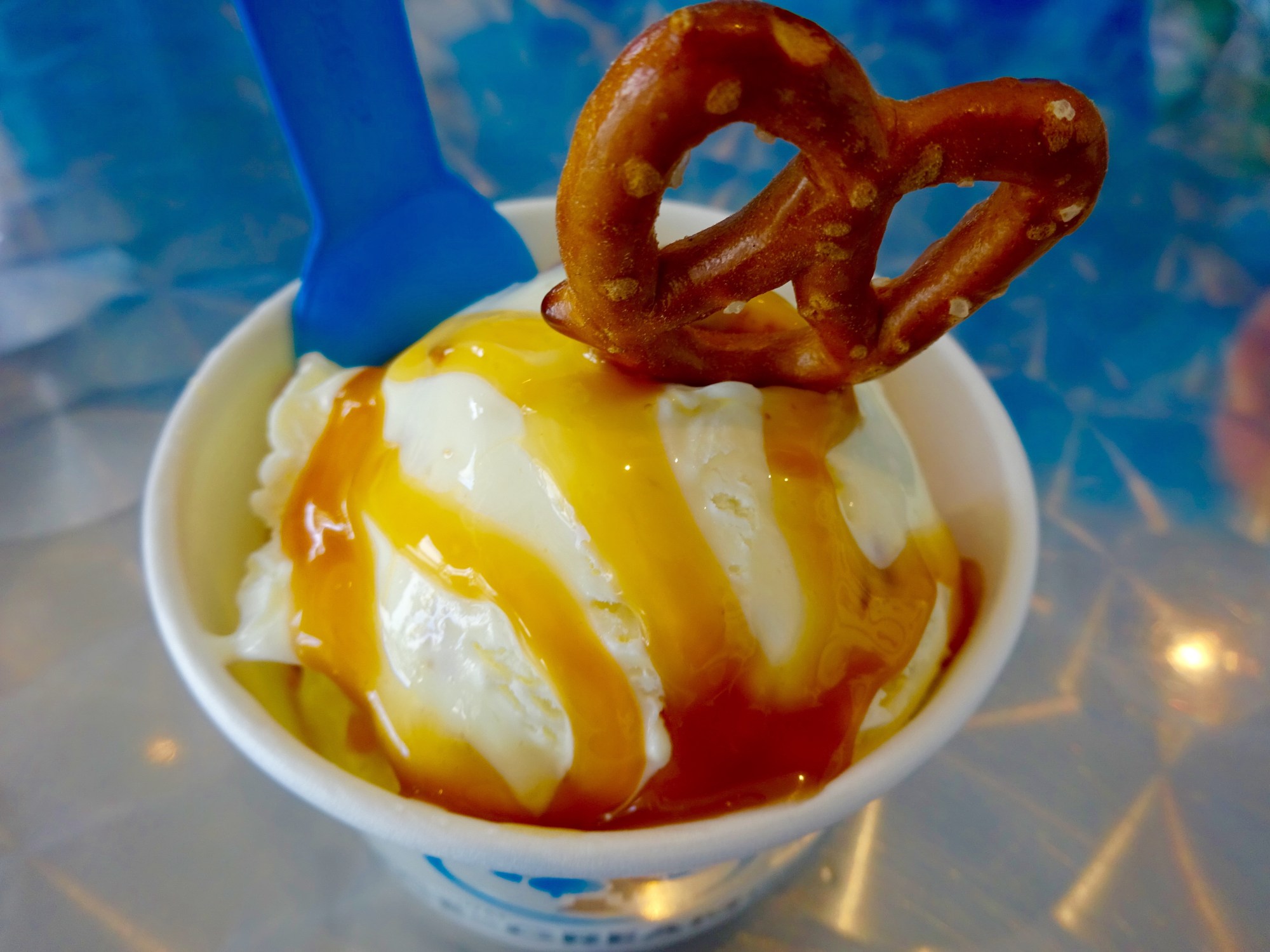 I almost went for the Movie Time Crunch (caramel popcorn base with chocolate drizzle), but the Salt Lick Crunch won. The Salt Lick Crunch consisted of vanilla ice cream with pretzels, caramel drizzle and a dash of sea salt. I enjoyed the salty-sweet combo and may start making pretzels a regular add to my ice cream at home.