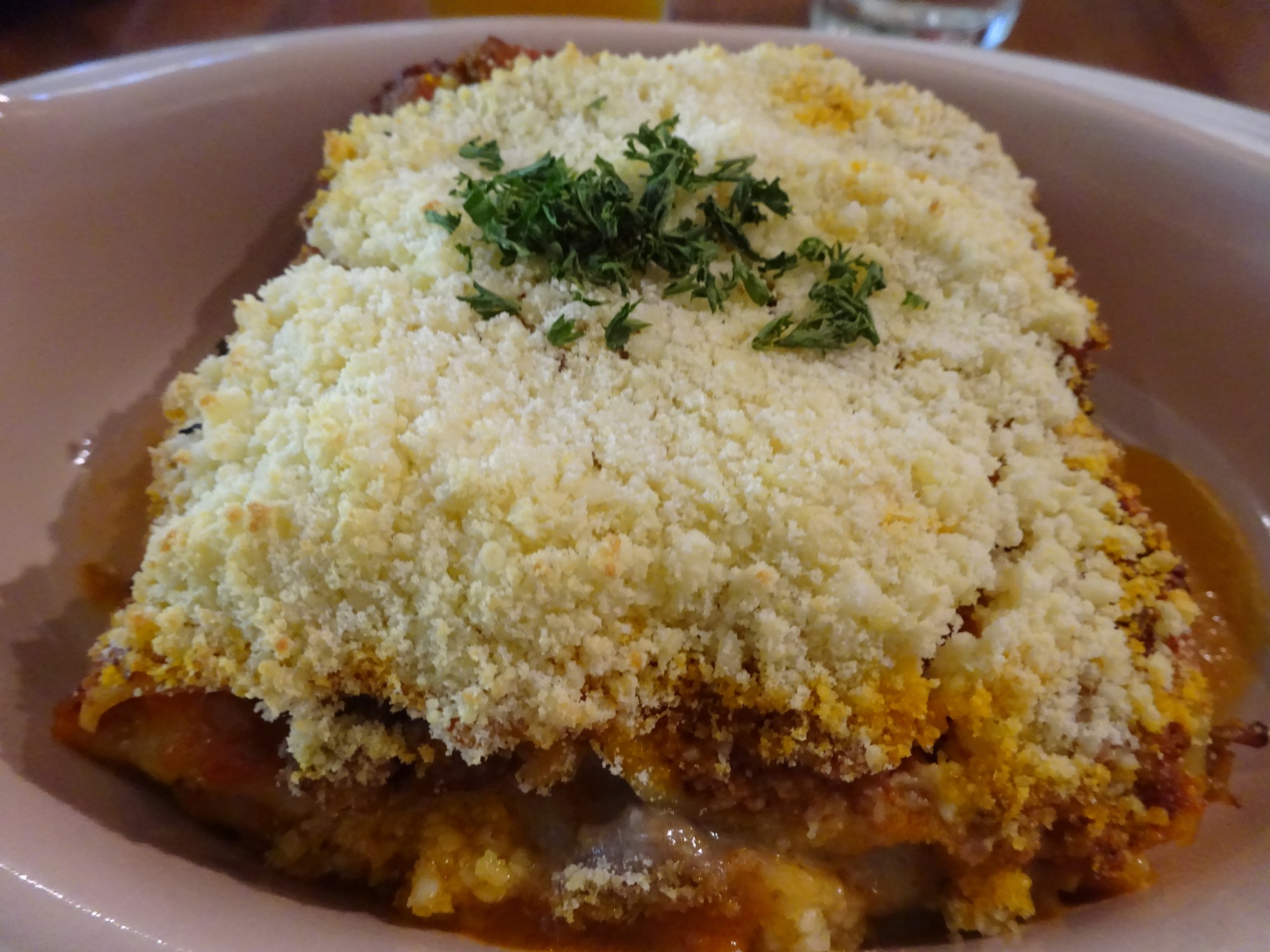 I had panicked when ordering and stuck to lasagna, a dish that’s tough get wrong. Made with housemade pasta sheets and layered with bolognese sauce, spinach, mushrooms and provolone and parmesan cheeses, the lasagna was good – although it did come under a heavy blanket of parmesan cheese which was a bit overwhelming.