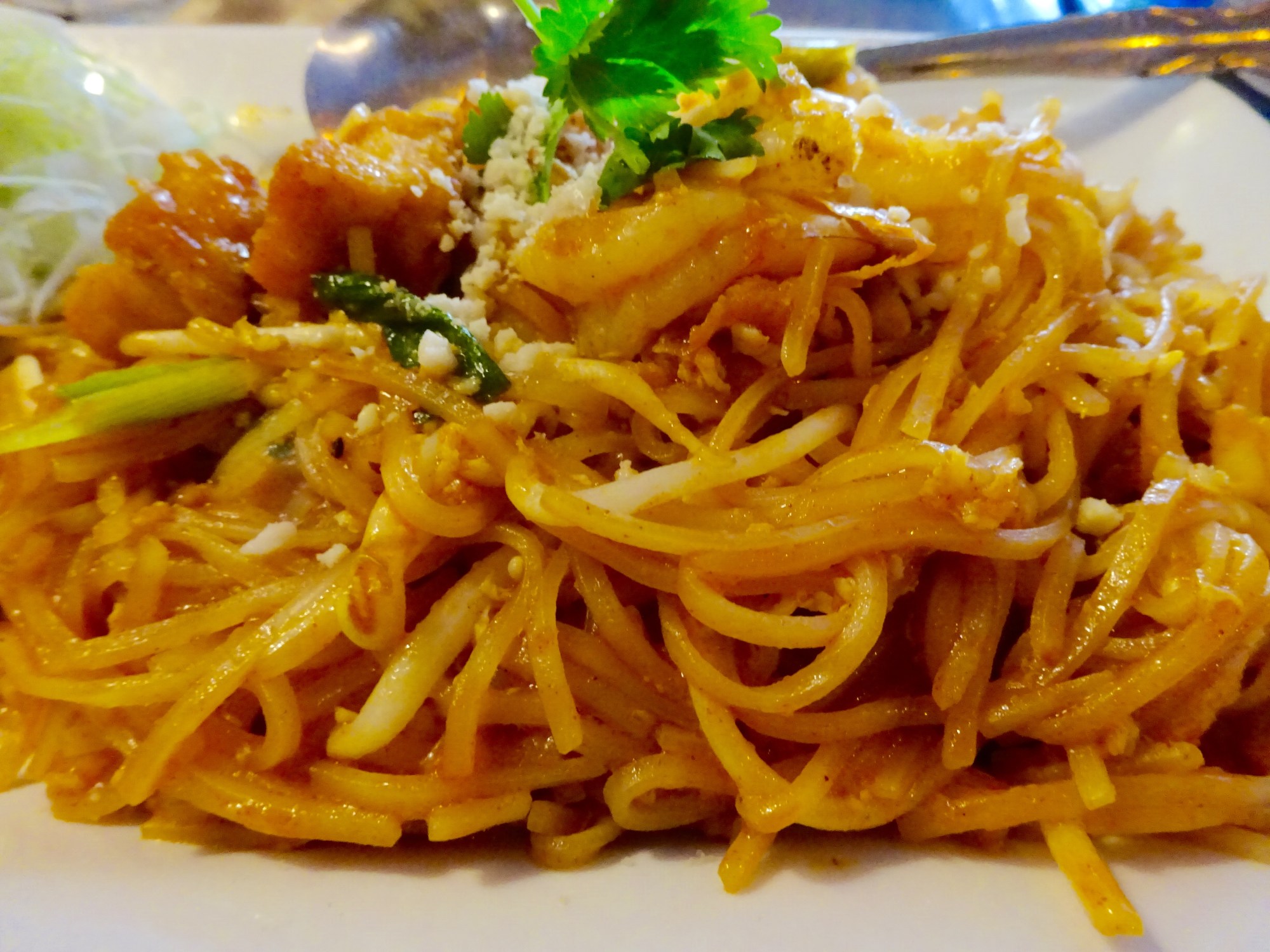 Even though the dining area is small, it seemed nice and cozy on a cold night. We ordered three dishes – a vegetarian pad see-ew with tofu, pad thai and seafood curry. All were tasty and satisfying. They were particularly generous with the seafood in the curry, a huge plus.