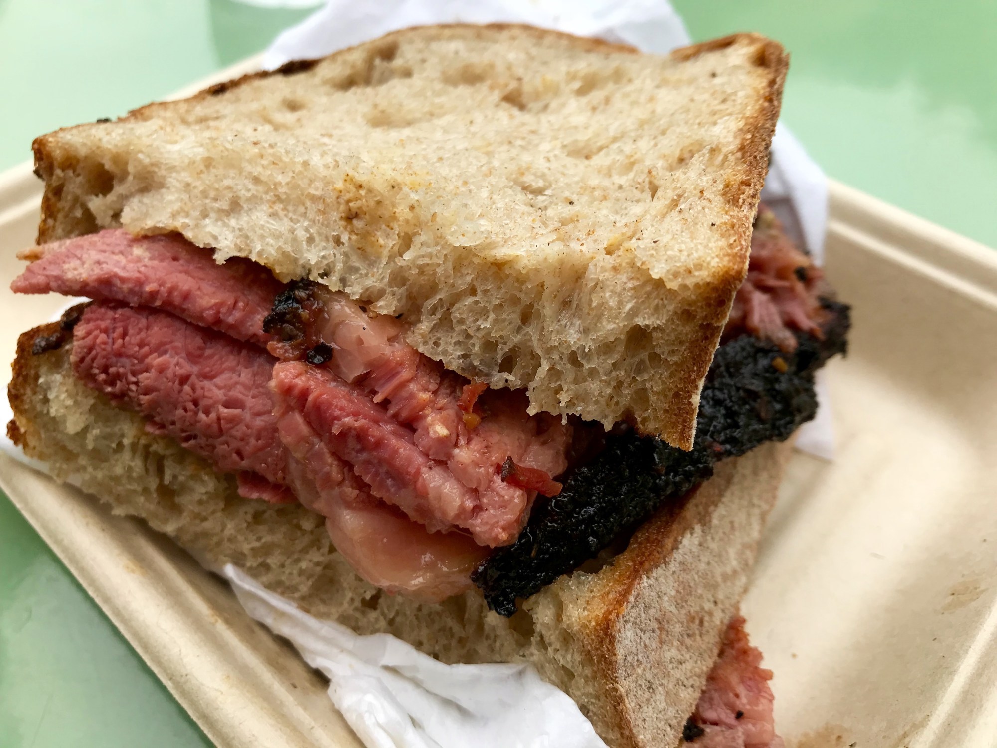 I was curious about Ugly Drum, rumored to be the best pastrami in Los Angeles. The meat is brined for two weeks, rubbed with various spices and then cooked in the smoker at Bludso’s BBQ on La Brea.