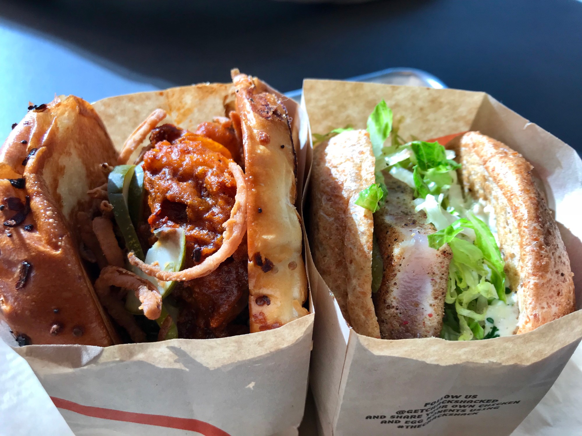 After checking the spiciness level of the Firebird (yes, the name was a bit intimidating), I was told that the heat mostly came from the sauce. With that reassurance, I ordered the Firebird (easy sauce) – spicy fried chicken, cool ranch dressing, crispy onions and pickles on a potato roll. I really like that they used thigh meat, ensuring that every bite of chicken would be perfectly moist. My sandwich was missing the ranch dressing to help temper the heat (growing pains), but that was a First World problem that could be easily fixed by a visit to the condiment bar.