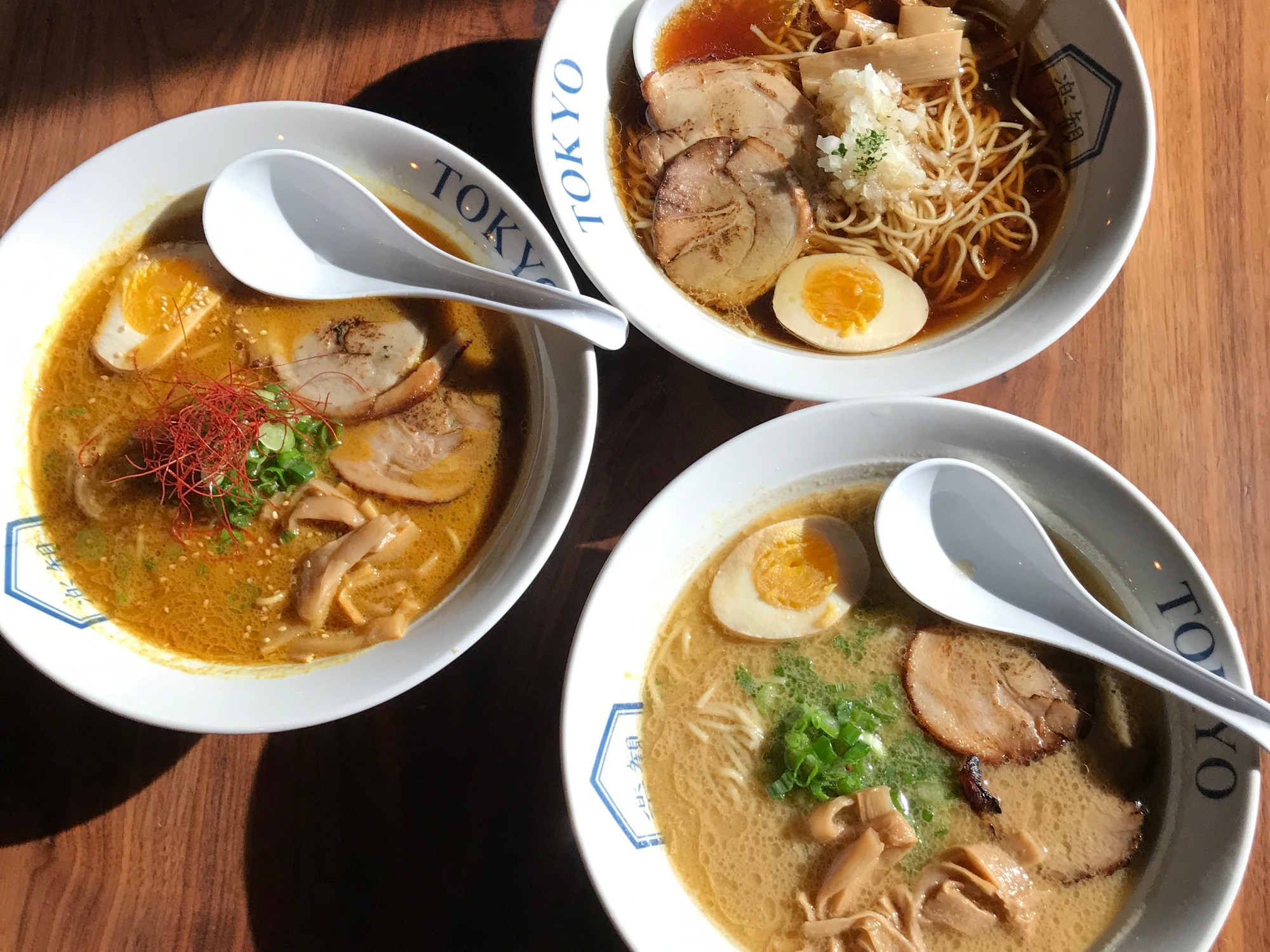 There are five different ramens to choose from, along with some appetizers, sushi and rice bowls. Four of the ramens have grilled pork and egg, though all can be made completely vegan with the substitution of tomato, corn and tofu (for the pork, egg and bamboo shoots).