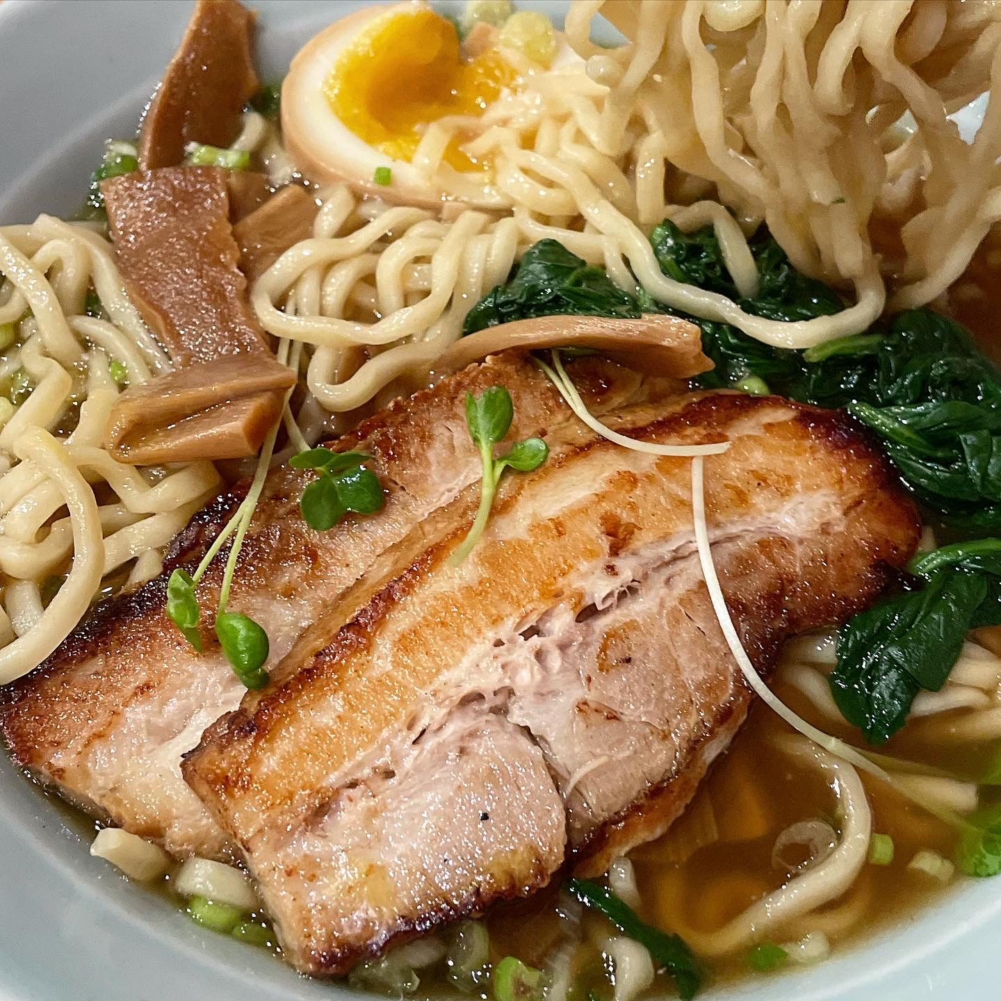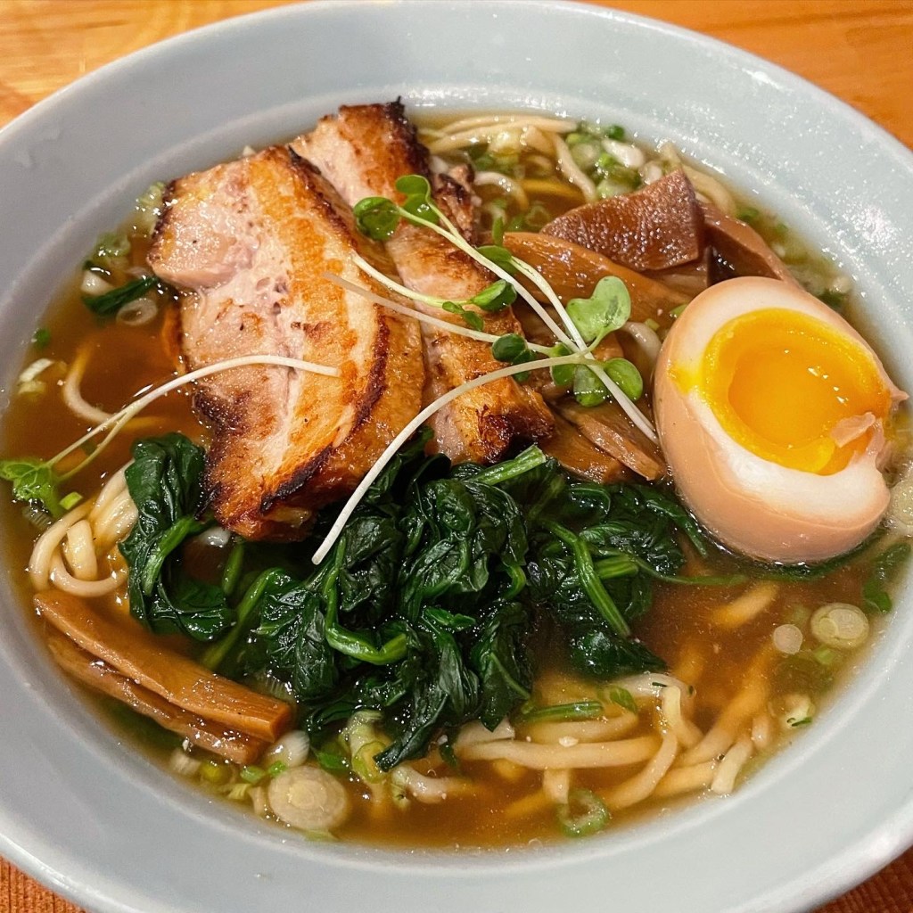 After roughly an hour, we were finally seated. As with many restaurants, you pull up their menu on your phone, using the smart code. While they have appetizers and rice bowls, we were here for the noodles. I ordered the Shoyu Ramen, which had a lighter chicken broth base. The bowl included a couple of slices of pork chashu, green onions, spinach, bamboo, kaiware sprouts and egg. I really appreciated that the spinach and egg were included, instead of having to be an add-on charge. The chashu was melt-in-your-mouth tender and the egg cooked perfectly.