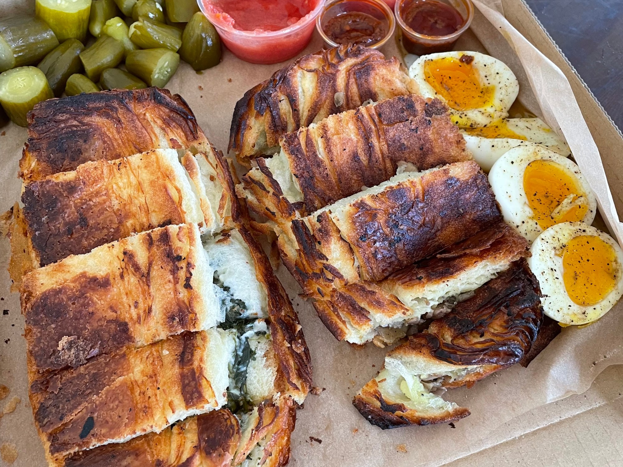 One of my favorite meals of 2022 was from Borekas Sephardic Pastries in Sherman Oaks – definitely worth the drive over the hill! This takeout window specializes in bourekas, a baked puff pastry filled with various fillings. Borekas uses brown butter, instead of oil, in their phyllo dough, resulting in a light flaky pastry.