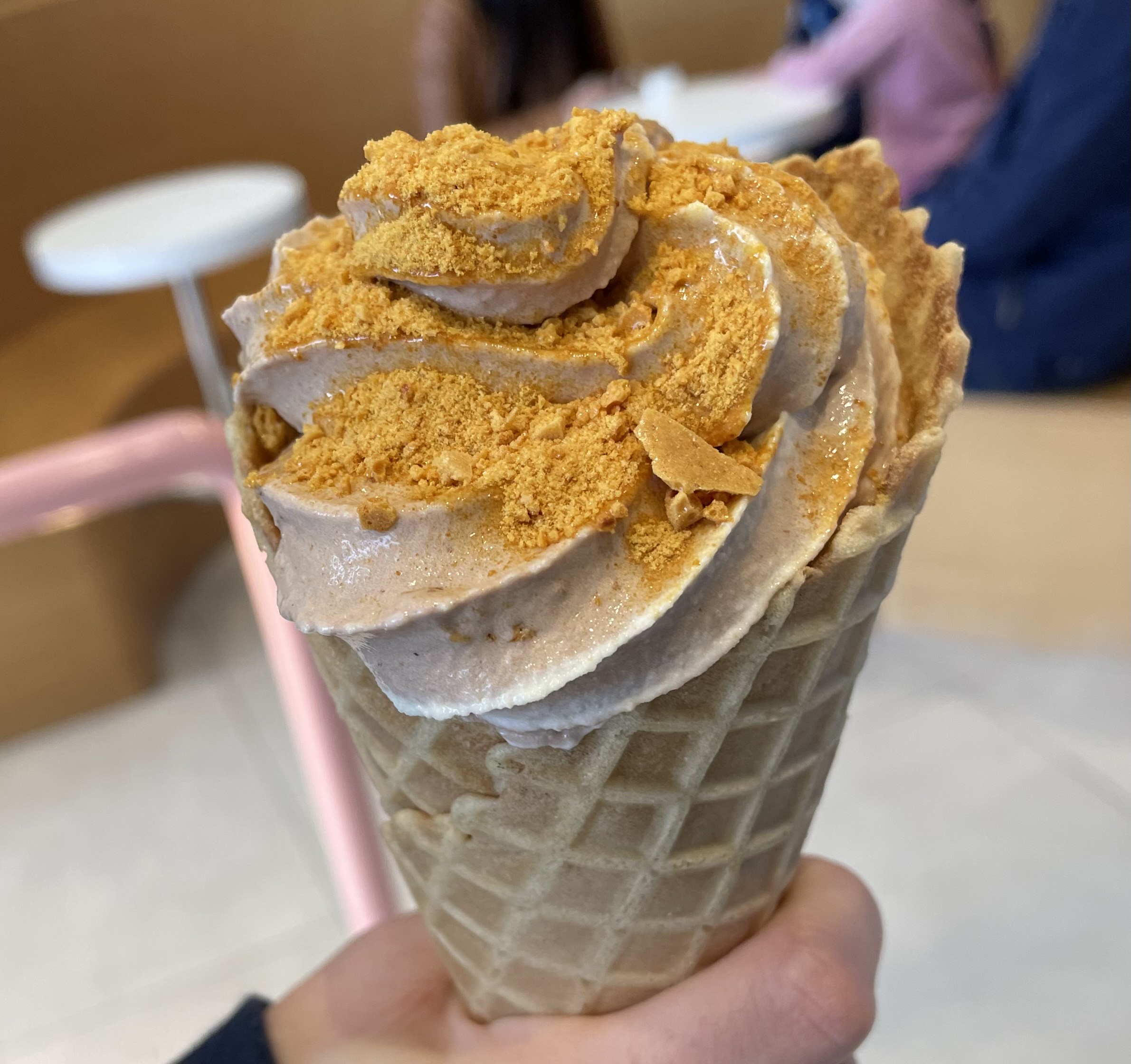 Hokey Pokey offers five flavors, all topped with their signature crunch. They charge the same price for cups and cones, and I would recommend choosing the cone, as it seemed like it was a more generous serving (I could be wrong). The half-size cone was the perfect size for one person. If you’re looking for non-dairy ice cream, Hokey Pokey offers that option at a slight uncharge (50 cents for the half and $1 for the full). They also have cloud bowls, which pair the ice cream with pavlova and berries, shakes, coffee and hot chocolate. Fancy an affogato? They can do that too. I never thought I’d say this but I’d be happy to do the Hokey Pokey in front of strangers any day of the week.